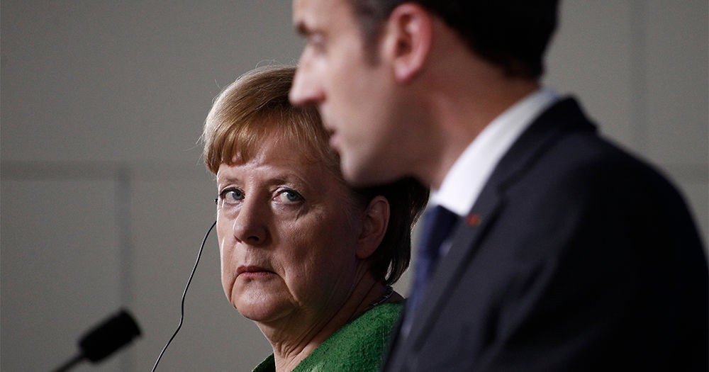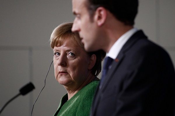 23rd March 2018 – the German Chancellor and the French President at a joint press conference at the Summit of European Union leaders.