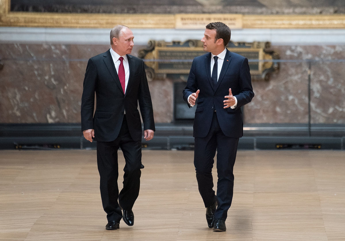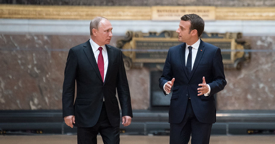 Emmanuel Macron and Vladimir Putin at Versailles on 29 May 2017