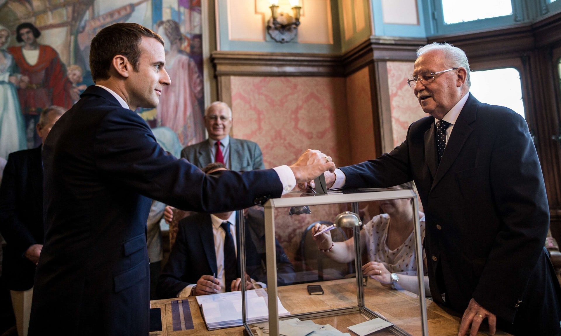Emmanuel Macron casts his ballot in Le Touquet, northern France