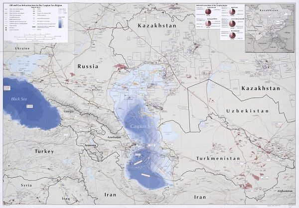 Oil and gas infrastructure in the Caspian Sea region, March 2012