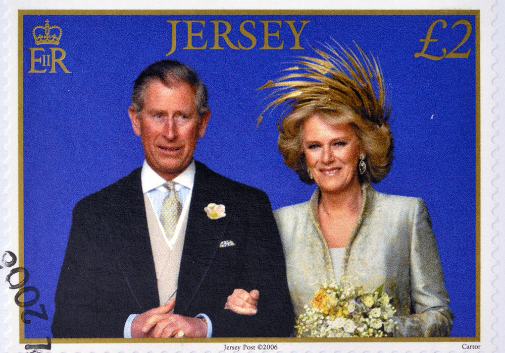 A stamp commemorating the wedding of Prince Charles and Camilla Parker Bowles