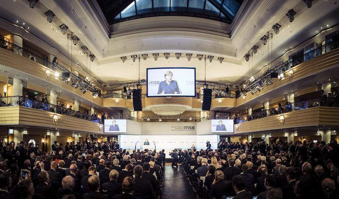 Angela Merkel is addressing the participants of the Munich Security Conference 2017.