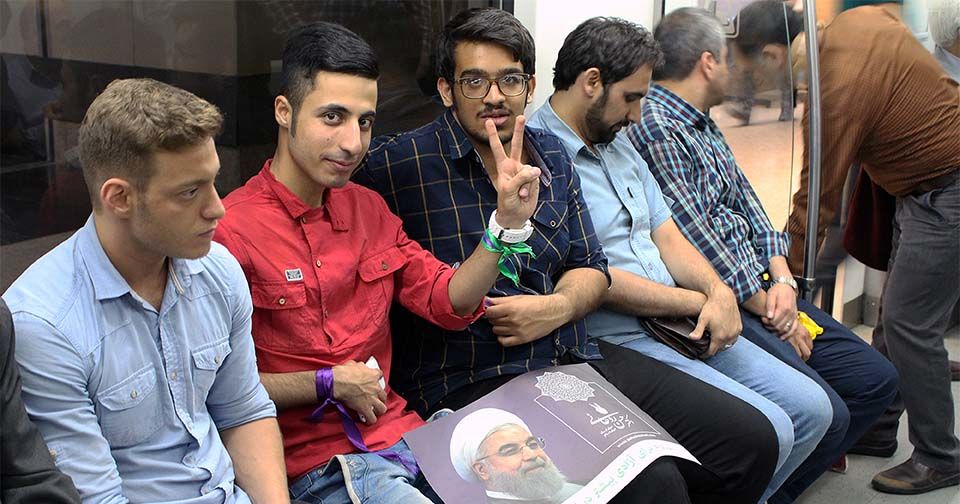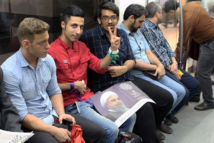 Iranian youth supporting Rouhani on the metro