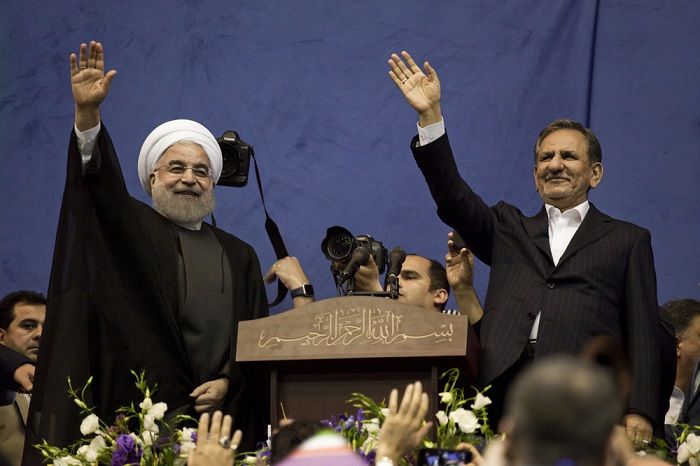 Incumbent and re-elected President Hassan Rouhani (on the left) at a campaign parade