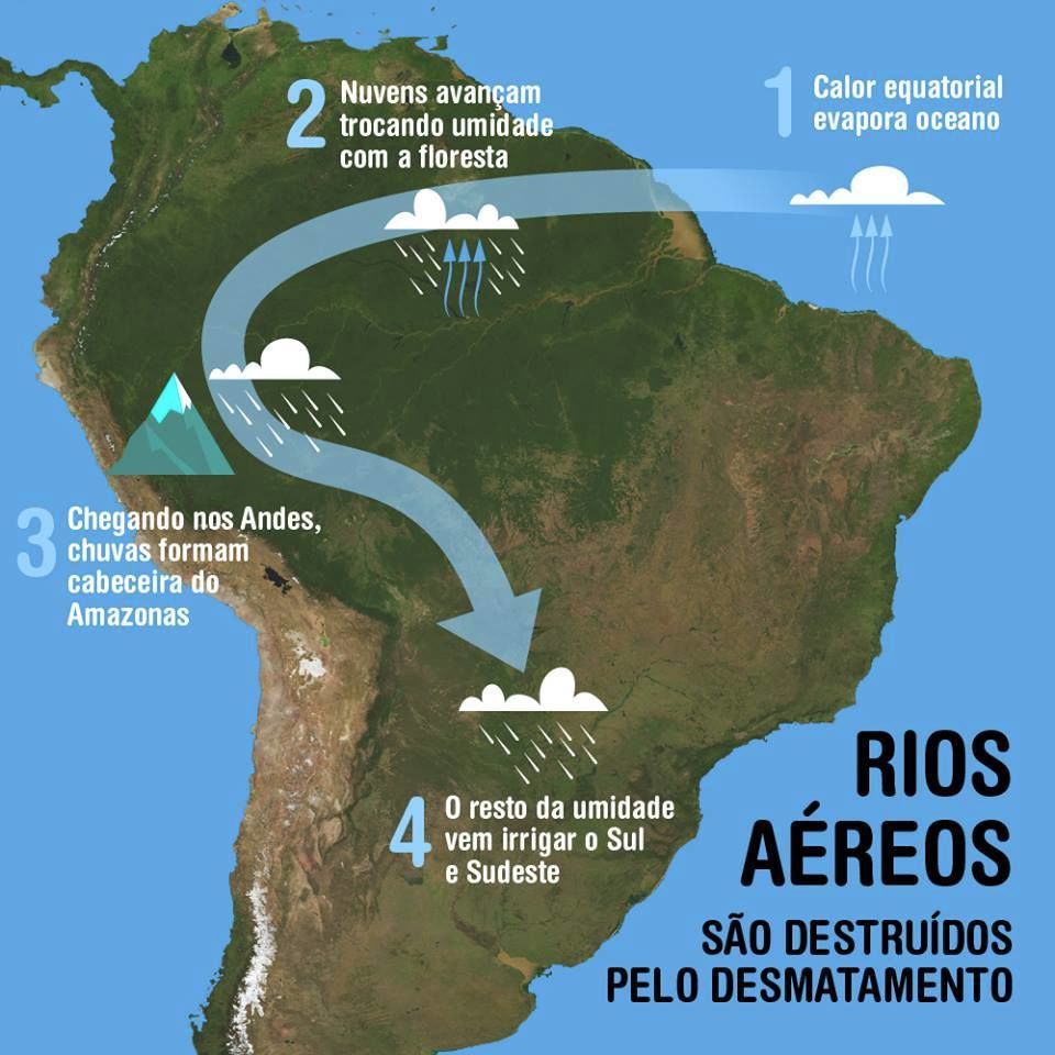 But back to the rainfall disparity between the areas that extend over the two sides of the range. This can be traced back to the so-called “flying rivers”: First, trade winds from the Atlantic transport the water evaporated at the equator in the form of clouds to the Amazon rainforests. Then, these clouds release their contents but soak up vapour transpired by the masses of forests that give off huge amounts of water into the air. At this point, the large body of moistorous air flows on to the Andes, where, hitting the mountains from the west, it ascends and discharges part of the humidity it carries. Finally, it turns to the south, and let out the remnants of its vapour in Southern Brazil. Consequently, the eastern part of the Andes receives a sufficient amount of rainfall (even in the central parts of that mountain, more than 80% of precipitation comes from the Amazon Basin), but at the same time, on the western part, there is a permanent rain shadow. Futhermore, this area, due to some other reasons, is mostly a low-pressure zone, and thus humid air masses from the Pacific also avoid it.