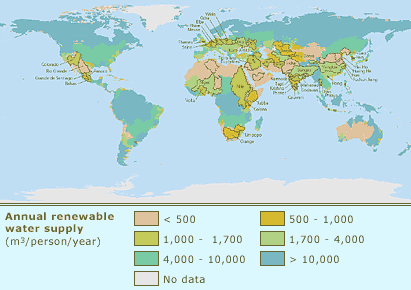 Projected annual renewable water supply in 2025 (m3/person/year)—on a global scale, Latin America is in the first rank