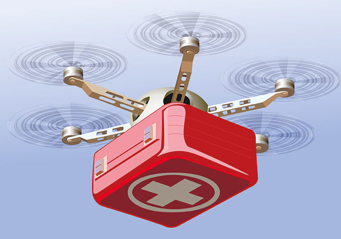 Drone delivering First Aid Box