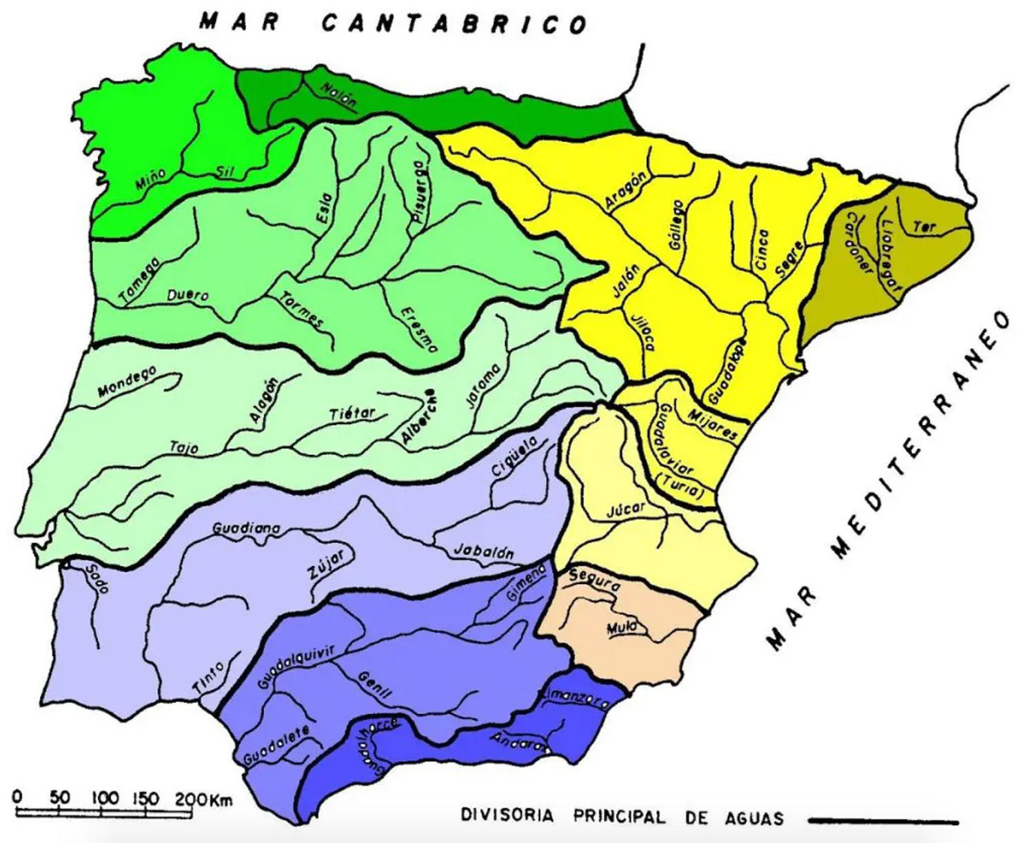 Spain and Portugal share five major river basins: the ones belonging to the Miño, the Limia, the Duero, the Tajo (Tagus), and the Guadiana