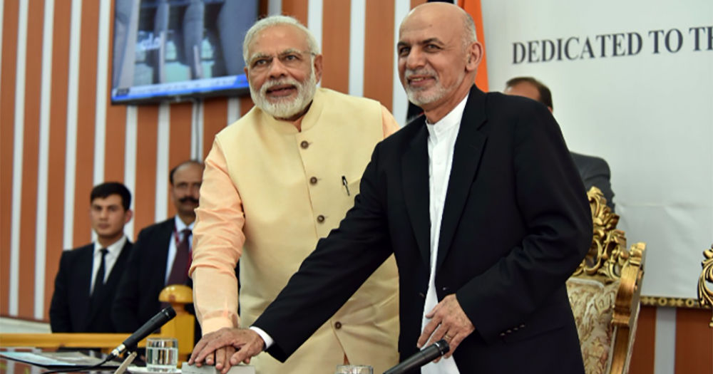 Indian Prime Minister Modi and the President of Afghanistan Ghani jointly inaugurate the Afghan–India Friendship Dam in 2016