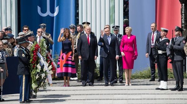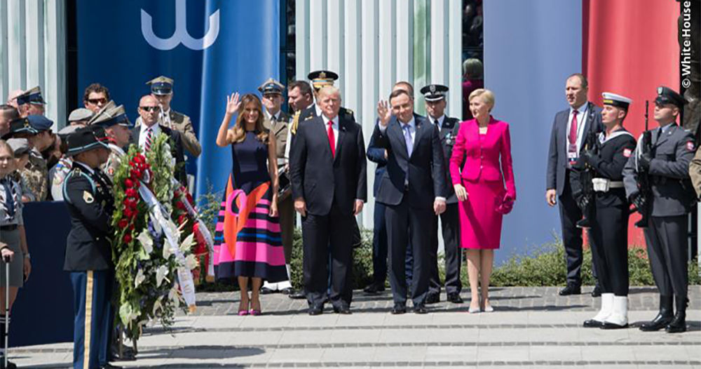 President Donald J. Trump, First Lady Melania Trump, President Andrzej Duda, and First Lady Agata Kornhauser-Duda during Trump’s visit to Poland in 2017