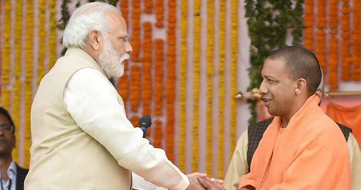 Narendra Modi (baloldalt) és Jógi Aditjanath (jobboldalt)