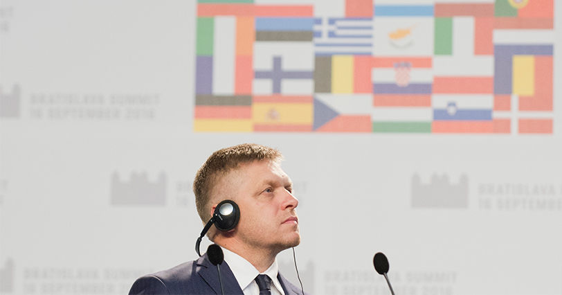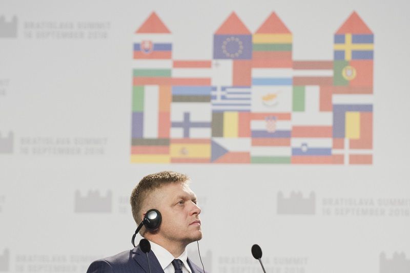 Robert Fico szlovák miniszterelnök a pozsonyi csúcstalálkozón, 2016. szeptember 16-án