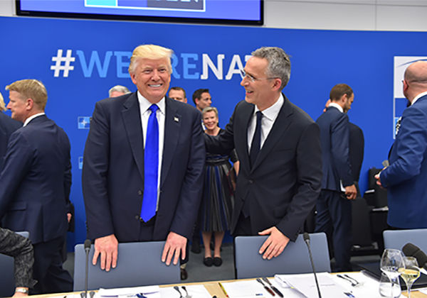 Donald J. Trump és Jens Stoltenberg találkozója a brüsszeli NATO-csúcson.