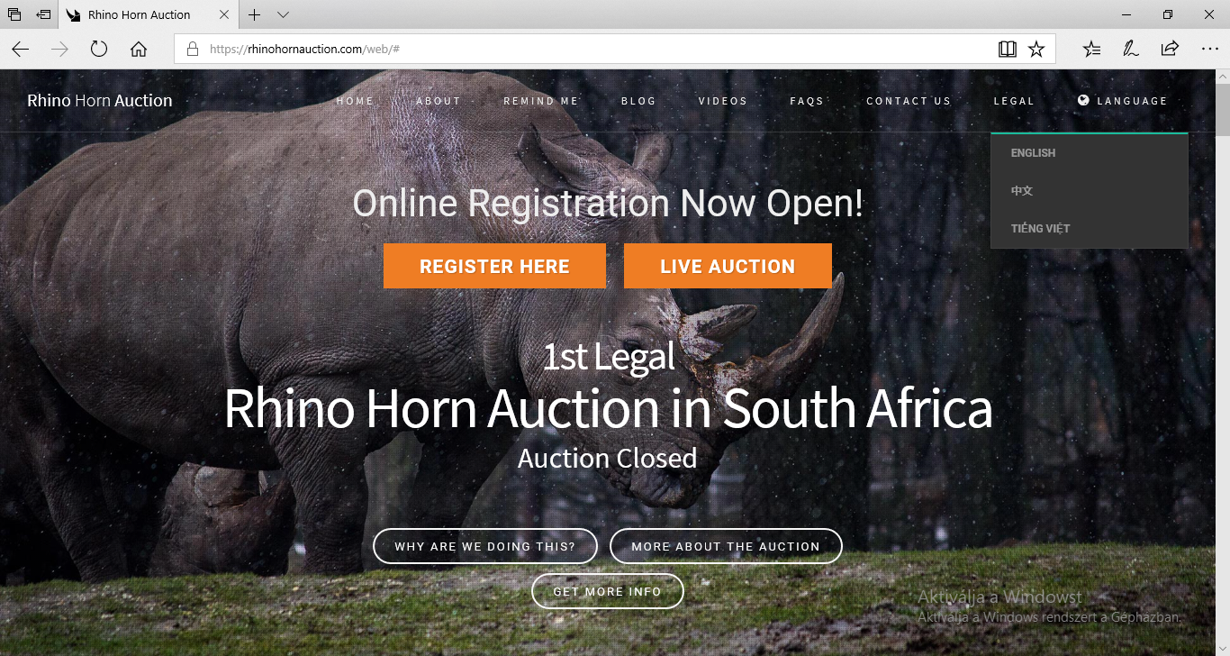 Az árverésen való részvételnek több feltétele is van. Az egyik szabály szerint csak olyan vevők indulhatnak rajta, akik Dél-Afrikában tartózkodnak, annak ellenére, hogy – mint azt már említettük – a szarvnak az országban nincsen piaca. Ráadásul ha jobban megnézzük a weboldalt, és megpróbáljuk megváltoztatni a nyelvet a jobb felső sarokban, láthatjuk, hogy annak tartalma angol, kínai és vietnámi nyelven is elérhető. Ennek a legvalószínűbb magyarázata az, hogy bár a vevőnek fizikailag Dél-Afrikában kell lennie, a vásárolt áru az árverést követően rövid időn belül elhagyja az országot, és belép a célországokba, amelyeket a weboldal nyelvválasztása már gyanúsan meg is határozott.