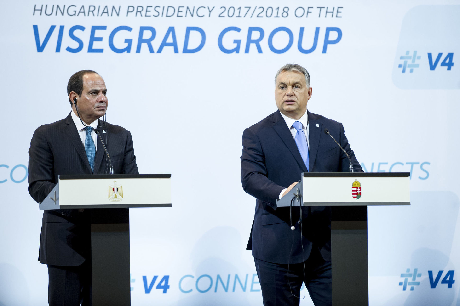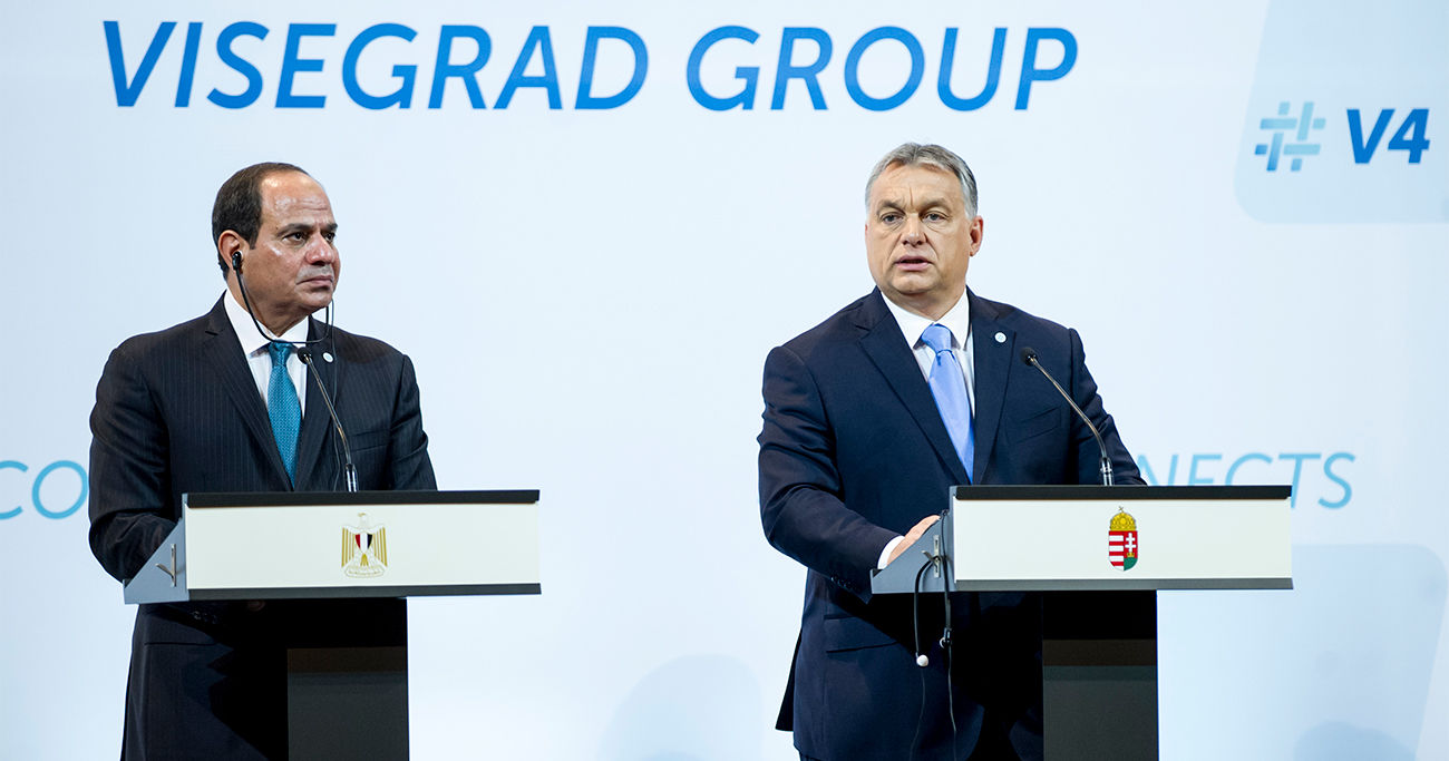 Abdel Fattah el-Sziszi egyiptomi elnök és Orbán Viktor a V4+Egyiptom találkozón