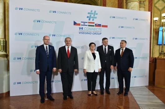 A visegrádi országok államfői és Benjamin Netanjahu a V4+Izrael találkozón